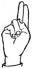 На ћирилици написано САРА ДАБИЋ састоји се из 9 слова [?]. Исписано ћириличном једноручном азбуком за глувонеме: